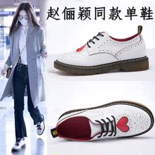 2017早春新款明星同款鞋爱心型真皮小白鞋布洛克平底休闲女单鞋子