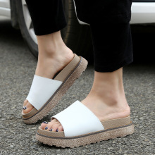 欧洲站2017春夏新款款真皮英伦风平底一字拖软底平底罗马女士凉鞋