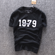 欧美植绒数字 外贸原单 夏季男装水洗纯棉磨毛短袖T恤修身青年潮T