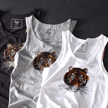水洗竹节棉宽松坎肩背心刺绣纯色透气汗背心男青年夏季百搭潮背心