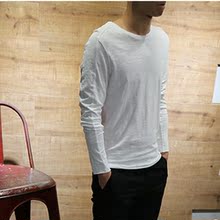 舒适竹节棉 男士圆领纯棉长袖T恤纯色打底衫青年修身