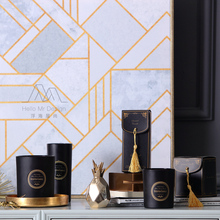 创意烛杯磨砂质感黑色徽章杯装蜡烛摆件香薰蜡烛婚庆蜡烛装饰品
