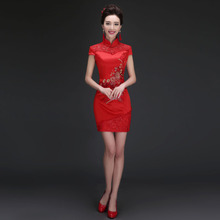 敬酒服旗袍短款中式结婚礼服复古红色新娘宴会晚礼服修身显瘦秋冬