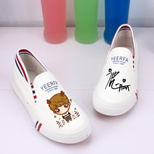 女学生平跟Q版卡通鹿晗同款EXO鞋子 白色低帮平底帆布鞋 懒人鞋