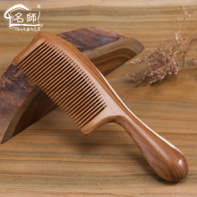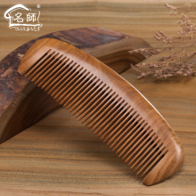 名师天然绿檀木梳子卷发按摩头梳定制刻字顺发直发密齿宽齿防静电