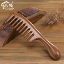 名师女士梳子绿檀木梳子宽齿大齿檀木梳防静电按摩养生时尚复古梳