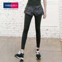 韩国瑜伽健身房长裤夏季速干透气跑步弹力紧身七分假两件运动裤女