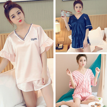 2017韩版夏季天冰丝睡衣女真丝绸公主甜美短袖裤大码家居服两件套