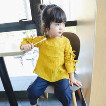 女童棉麻娃娃衫春秋装韩国2017儿童纯色白色上衣宝宝圆领打底衫