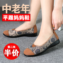 老北京布鞋女平跟妈妈鞋春秋轻便中老年女平底老人单鞋软底懒人鞋