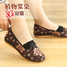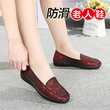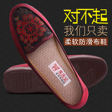 老北京布鞋女2017春夏新款单鞋防滑中老年妈妈鞋一脚蹬平跟奶奶鞋