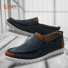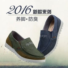 老北京布鞋春秋轻便一脚蹬男鞋方头步源轩低帮透气男士商务休闲鞋