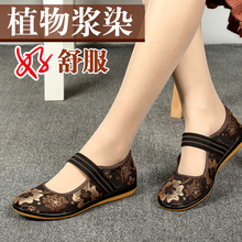 步源轩老北京布鞋女夏休闲坡跟浅口一脚套女鞋中年透气平底妈妈鞋