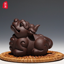 涧溪宜兴紫砂茶宠雕塑摆件茶玩貔貅 陈洪军独角小貔貅茶具可养