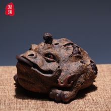 涧溪宜兴紫砂茶宠雕塑万年金蟾王霸气特小号树皮金蟾陈洪军工艺品