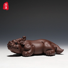 涧溪宜兴紫砂茶宠雕塑摆件茶具名家陈洪军长貔貅笔架茶玩工艺品