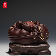 涧溪紫砂茶宠雕塑摆件财源滚滚 陈洪军描金时来运转茶具