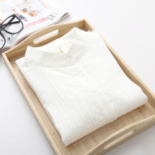 2017春季新款文艺小清新长袖女衬衣 百搭小V立领打底衫宽松女衬衫