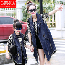 BMUNKLW女士外套中长款牛仔马甲女韩版无袖背心上衣女牛仔坎肩潮