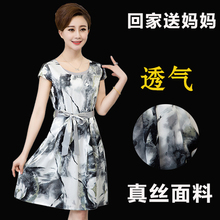 中年女装夏装短袖妈妈装裙子中老年真丝连衣裙夏桑蚕丝30-40-50岁