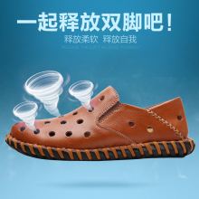 透气镂空洞洞鞋男凉鞋男士休闲鞋凉拖鞋真皮韩版潮沙滩鞋防滑夏季