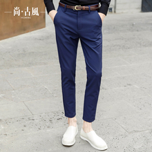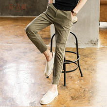尚古风九分裤男夏季纯棉韩版小脚裤直筒修身潮流学生百搭休闲裤男