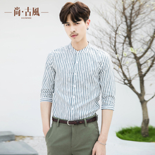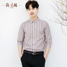 衬衫男短袖休闲条纹潮流韩版青年2017夏季半袖帅气时尚七分袖衬衣