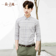 格子衬衫男 韩版修身2017夏季新款潮流青年衣服男七分袖休闲寸衫