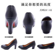 新款工作鞋女黑色中跟真皮小码上班鞋低跟浅口正装高跟单鞋大码43