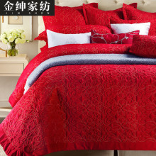 金绅欧式床盖红色婚庆贡缎全棉绗缝被三件套空调夏凉被夹棉床罩