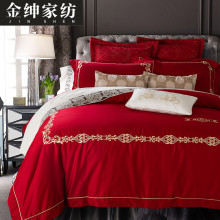金绅贡缎刺绣四件套欧式婚庆六件套大红色结婚多件套60长绒棉套件