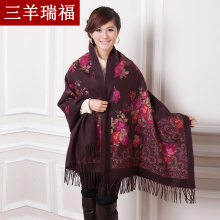 新款秋冬民族风外搭双面印花羊毛披肩女 加厚保暖围巾两用长款