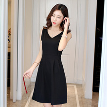 夏季连衣裙夏季韩版显瘦无袖背心裙V领A字打底裙气质赫本小黑裙