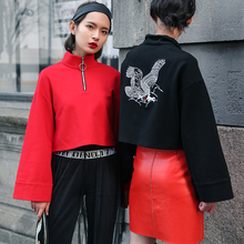 SNO.17原创女装春季2017新款欧洲站短款宽松长袖上衣套头高领卫衣