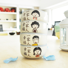 樱桃小丸子幸福一家七夕情人节礼物陶瓷碗 汤碗儿童碗卡通碗套碗