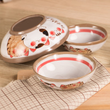 波佐见烧 福猫系列 日式手绘釉下彩陶招财猫饭碗茶碗中碗面碗