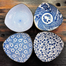 4.5英寸日式和风青花瓷复古风格手柄米饭碗小碗