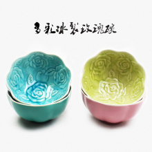 玫瑰花浮雕冰裂碗裂纹零食碗水果米饭创意碗特色餐具