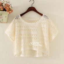 蝙蝠袖短款针织衫短外套女装蕾丝小披肩外搭套头网衫镂空罩衫夏季