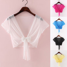 立领雪纺系带短款小坎肩女装夏季薄款短袖小外搭小披肩短外套百搭