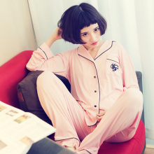 韩版睡衣女春秋开衫翻领欧美纯棉长袖长裤莫代尔睡衣家居服套装