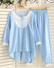 甜美可爱公主宫廷风韩国睡衣女夏纯棉睡裙蕾丝长袖春秋家居服套装