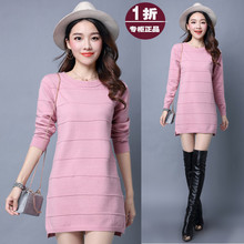 2017秋冬装新款纯色圆领毛衣女套头中长款大码针织羊毛衫打底衫裙