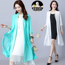 2017夏季新款真丝开衫防晒衣女中长款雪纺衫大码长外搭披肩薄罩衫