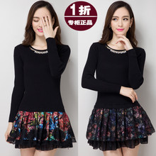 2017春秋冬装新款中年大码假两件套针织打底毛衣连衣裙广场舞裙子