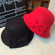 亲子款毛呢盆帽女宝宝可爱蝴蝶结渔夫帽儿童帽子女童圆顶小礼帽子