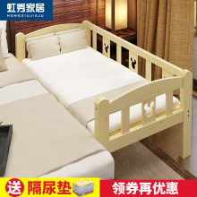 儿童床带护栏实木婴儿床松木加宽床男孩女孩单人小床幼儿床拼接床