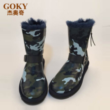 GOKY羊皮毛一体雪地靴迷彩拉链中筒靴保暖防滑羊皮毛女靴冬季新款