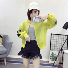 韩版夏季百搭薄款欧根纱立领拉链短外套玫瑰花刺绣防晒衣女棒球服