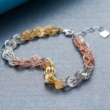 925纯银手链 女士时尚韩版三色彩金手链 饰品 情侣好友生日礼品